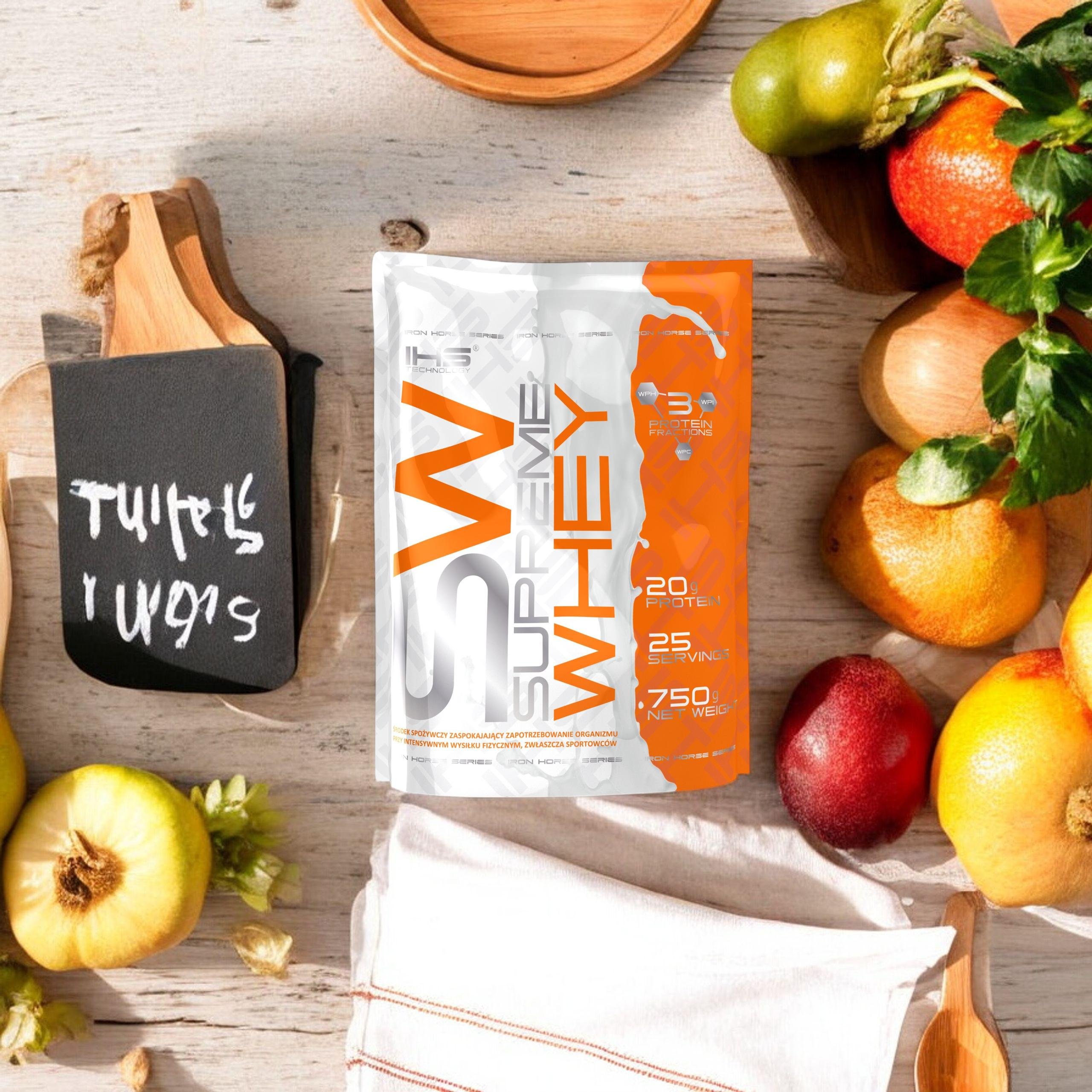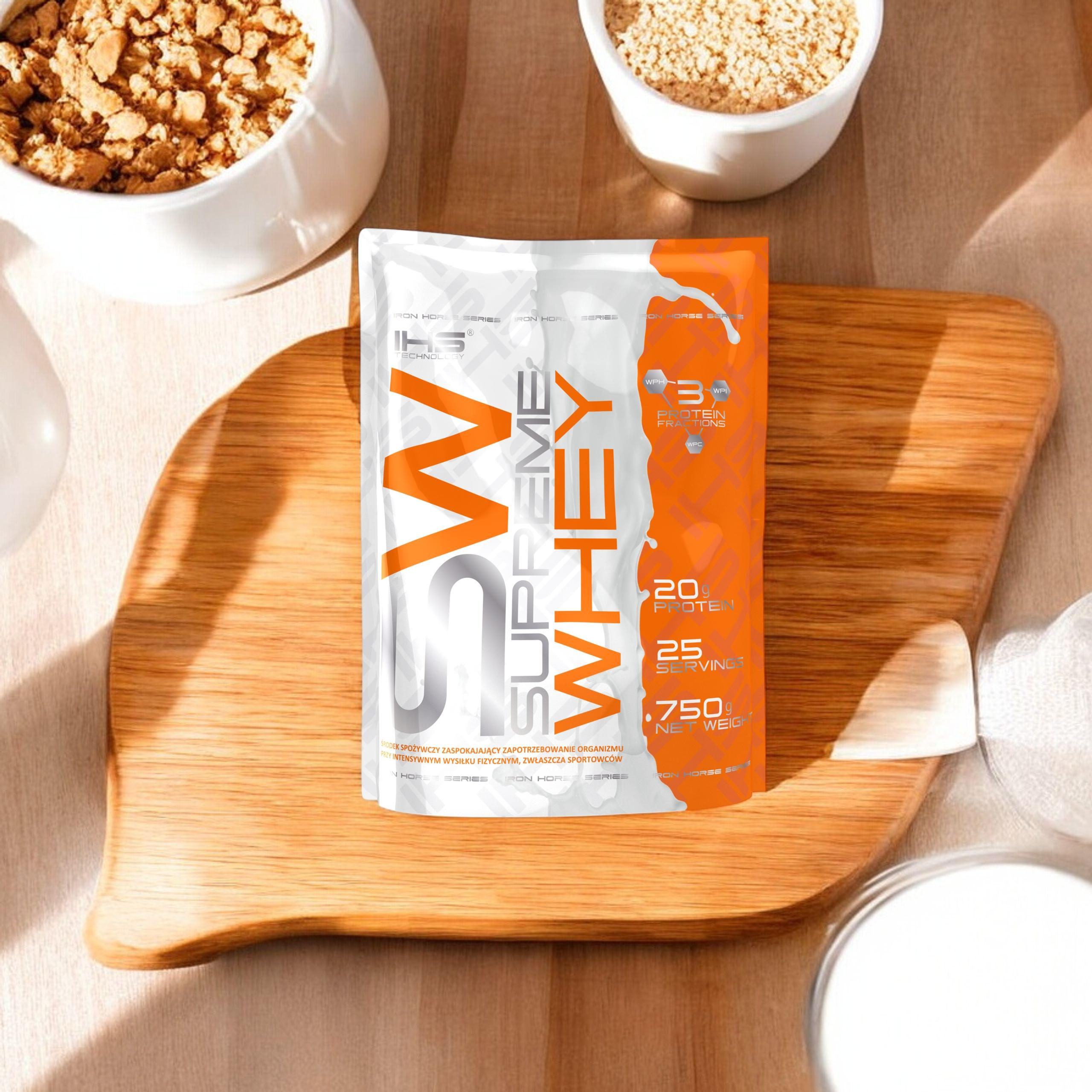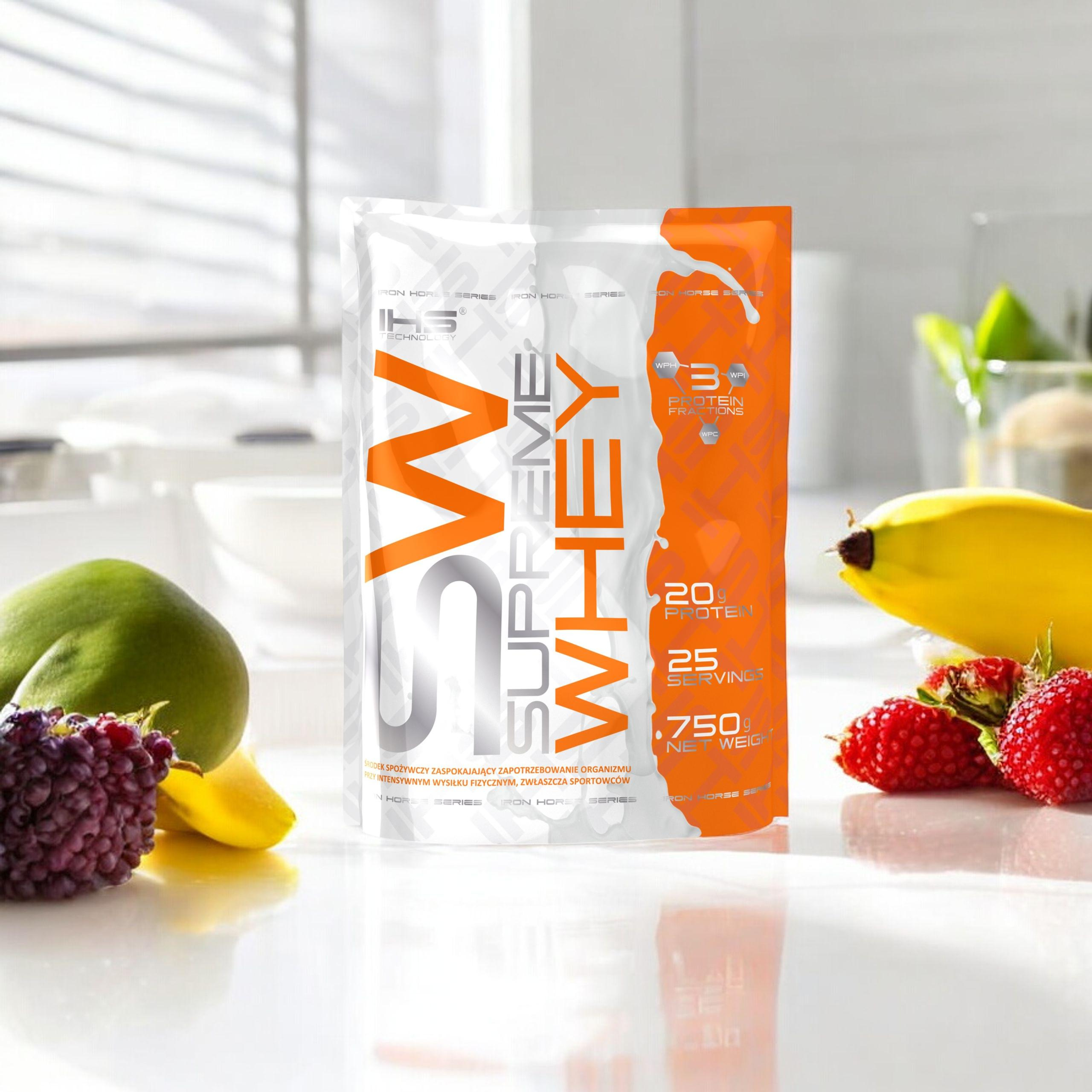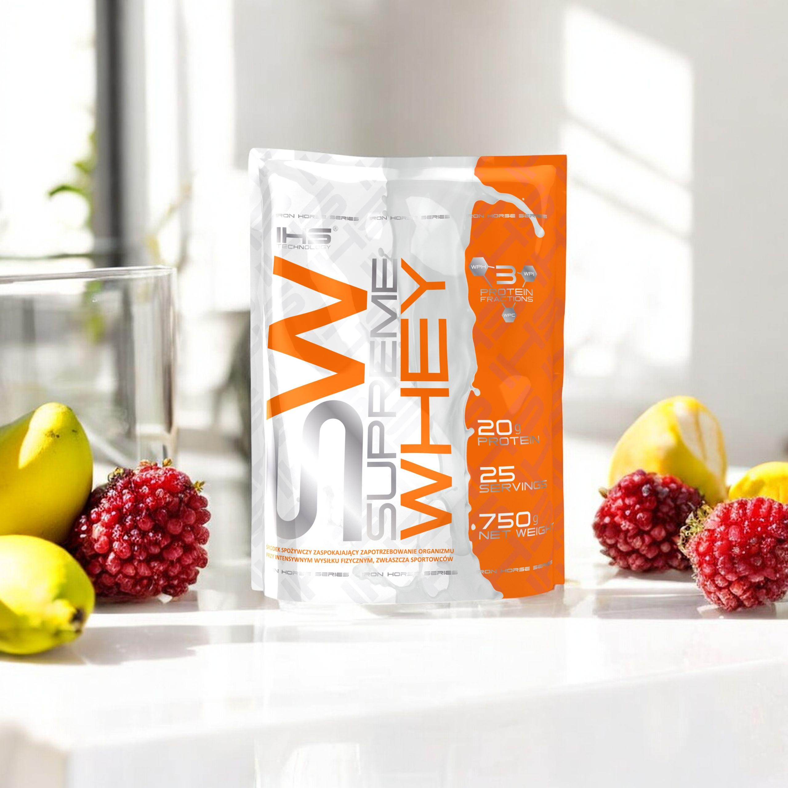 - Supreme Whey est un complément protéiné avec un profil complet d’acides aminés, qui facilite le développement de la masse musculaire, améliore la récupération et soutient l’équilibre azoté positif de l’organisme.