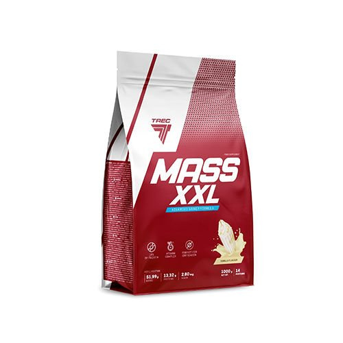Ingrédients Mass XXL : Maltodextrines (57 %) ; concentré de protéine de lactosérum (de lait) (24 %) ; dextrose (11 %) ; cacao pour goût chocolat ; agent épaississant (amidon modifié de orge (gluten)) ; arômes ; sel pour les goûts chocolat et caramel salé ; concentré de jus de betterave pour goût fraise ; régulateurs d'acidité pour goût fraise (acide citrique, acide malique) ; colorant pour goûts banane, caramel salé et vanille (bêta-carotène) ; édulcorant (sucralose) ; complexe de vitamines [vitamine C (acide L-ascorbique) ; niacine (nicotinamide) ; vitamine E (acétate de DL-alphatocophérol) ; acide pantothénique (D-pantothénate de calcium) ; vitamine B6 (chlorhydrate de pyridoxine) ; riboflavine ; thiamine (mononitrate de thiamine) ; acide folique (acide ptéroylmonoglutamique) ; biotine (D-biotinamide) ; vitamine B12 (cyanocobalamine)].