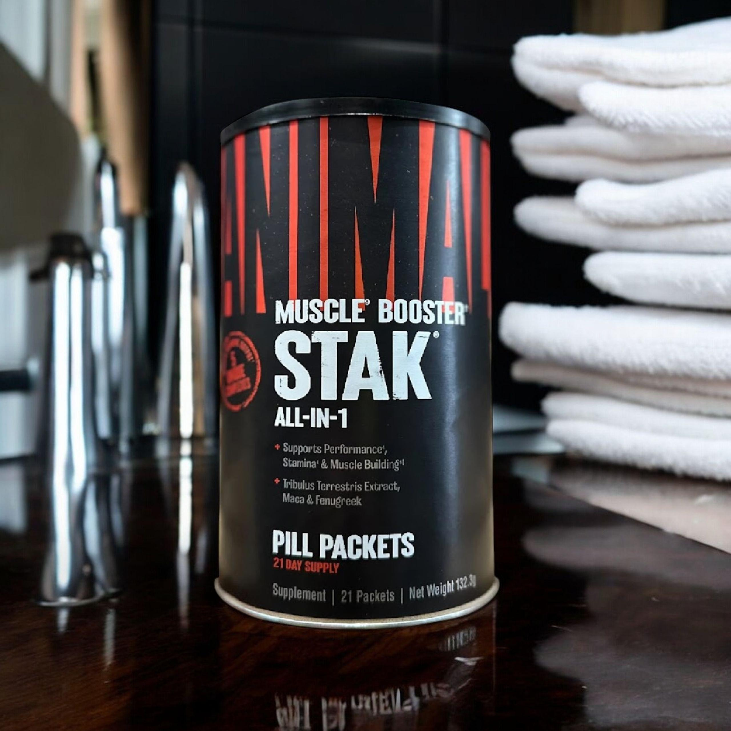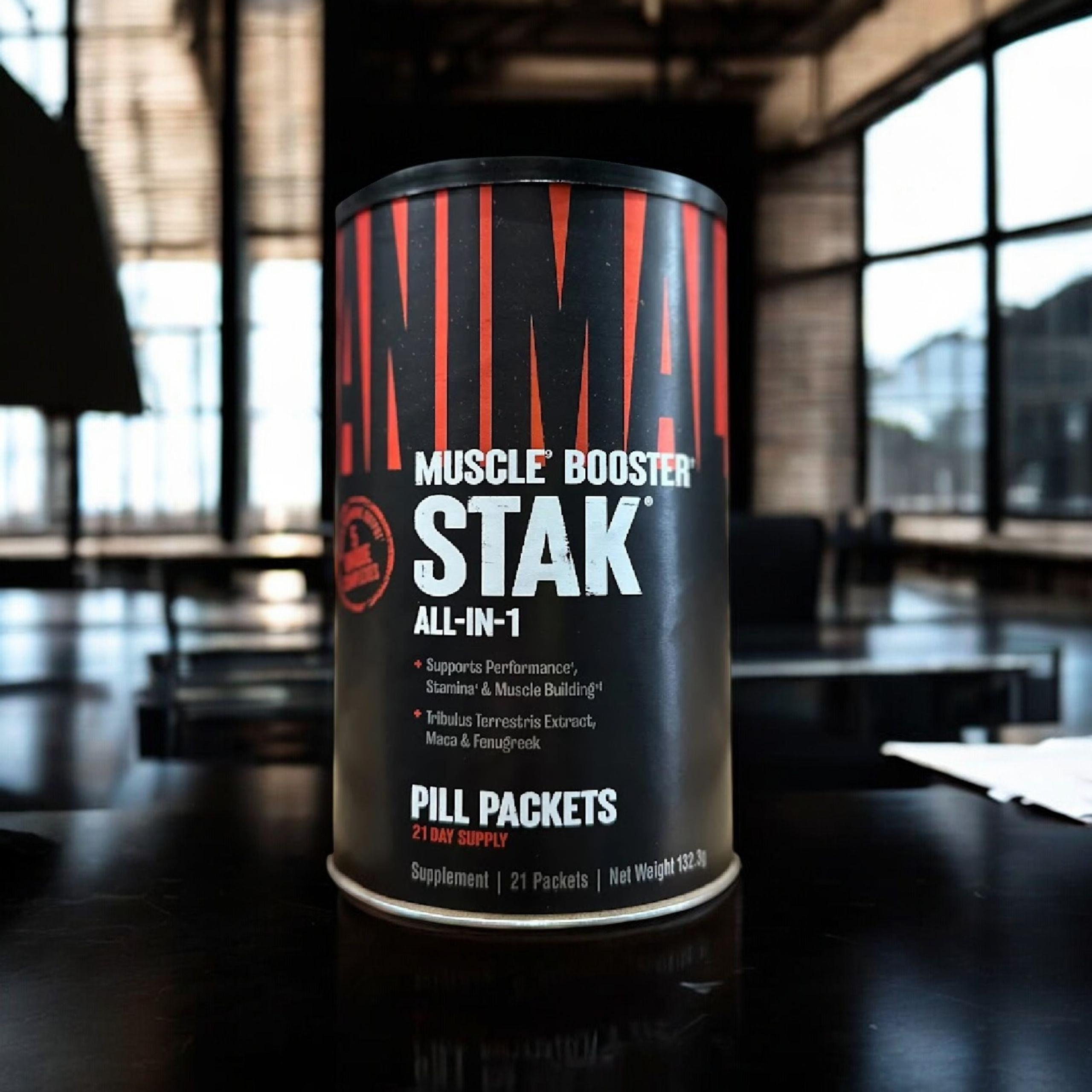 - Animal Stak augmente naturellement le niveau de testostérone, l'hormone androgène masculine responsable de la croissance de la masse musculaire ! Le complément augmente la testostérone libre, c'est-à-dire celle qui est active. Favorise la production de GH