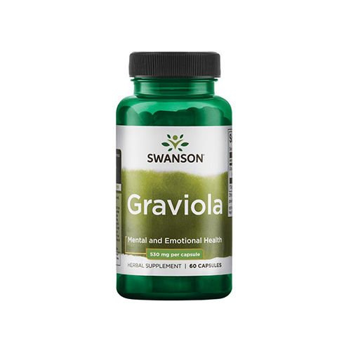 Le produit Swanson contient Graviola - un fruit connu en Amérique du Sud et aux Philippines. En français, on l'appelle le corossolier, il pousse dans les Caraïbes. Toujours vert, il peut atteindre jusqu'à 4 mètres de hauteur ! Ses fruits sont ovales, avec une pulpe blanche et de grosses graines noires. Ils sont couverts de protubérances rappelant des épines. Ils peuvent peser jusqu'à 6 kilogrammes. Traditionnellement, on pense que toute la plante (fleurs, fruits, graines, racine et feuilles) a des effets bénéfiques.