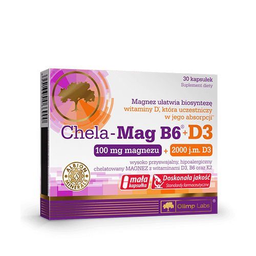 - OLIMP Chela-Mag B6 + D - 30caps. est un excellent produit qui soutient le bon fonctionnement des muscles et du système nerveux. De plus, il a un effet bénéfique sur les os et les dents.