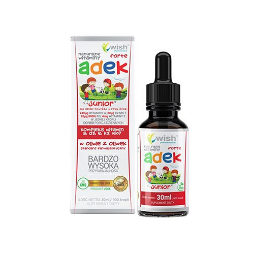 - Vitamin ADEK Forte Junior est un supplément pour enfants fournissant un ensemble de vitamines A, D, E et K bien solubles dans les graisses, garantissant ainsi qu'après leur consommation, il n'y a aucun risque de carence. Elles assurent une bonne immunité,
