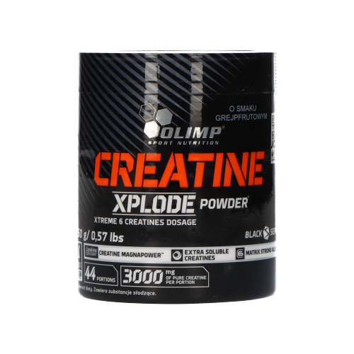 - Le supplément Creatine Xplode Powder de la société Olimp contient de la créatine sous 6 formes. Recommandé pour les personnes physiquement actives et les sportifs. Le produit se caractérise par une absorption rapide et une haute solubilité. De plus, il ne