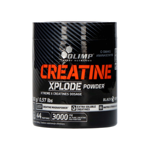 - Le supplément Creatine Xplode Powder de la société Olimp contient de la créatine sous 6 formes. Recommandé pour les personnes physiquement actives et les sportifs. Le produit se caractérise par une absorption rapide et une haute solubilité. De plus, il ne