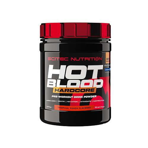 - Hot Blood Hardcore de la marque Scitec est un pré-entraînement unique contenant une forte dose de bêta-alanine, citrulline, carnitine, créatine, arginine, taurine et BCAA. Pour renforcer l'effet du produit, il a été ajouté du guarana, du gingembre, de la