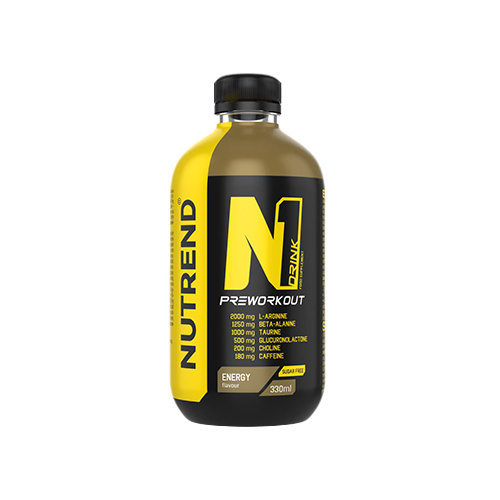 - Un shot pré-entraînement exceptionnel N1 Pre Workout de l'entreprise tchèque NUTREND avec un mélange fortement énergisant. Contient diverses sources de caféine, de la bêta-alanine et un extrait de BioPerine.