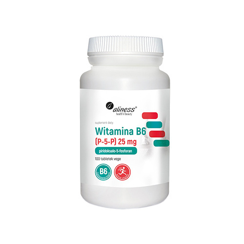 - Aliness Vitamine B6 (P-5-P) 25mg soutient le système nerveux et immunitaire, produisant des neurotransmetteurs et des lymphocytes. Indispensable pour le métabolisme et la production de globules rouges.