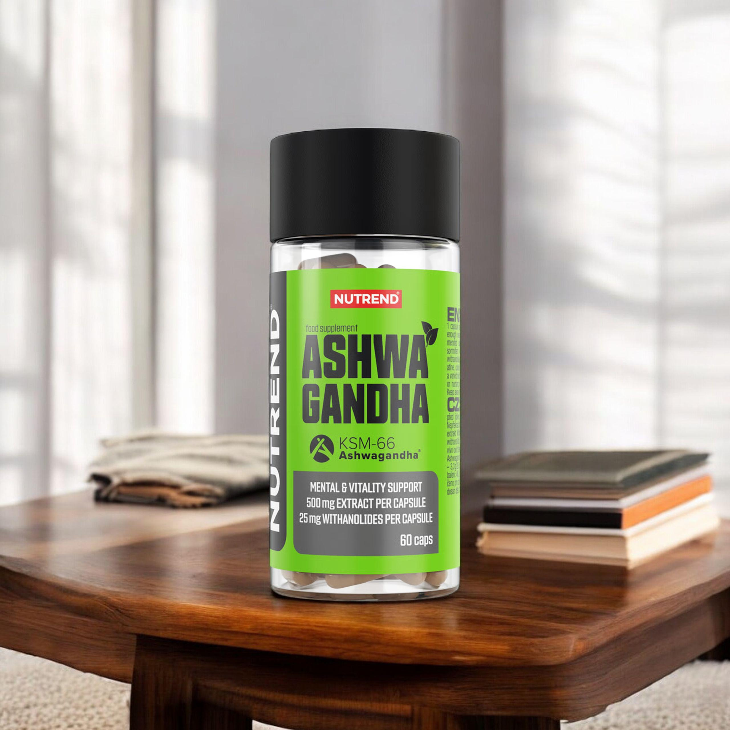 - Ashwagandha 60 caps. NUTREND - soutien pour les sportifs et réduction du stress. Contient un extrait certifié KSM-66 de haute qualité et 5% de withanolides bioactifs.