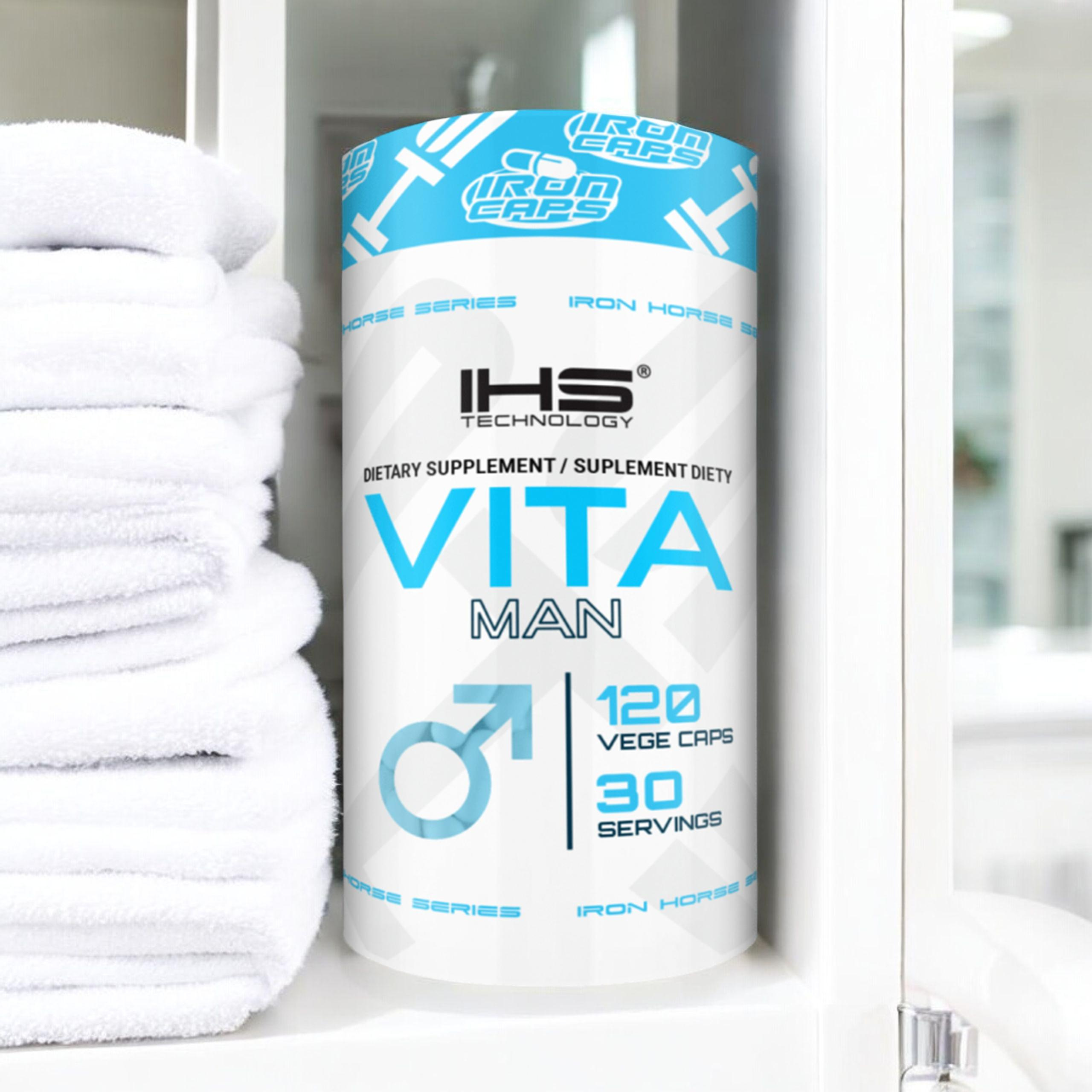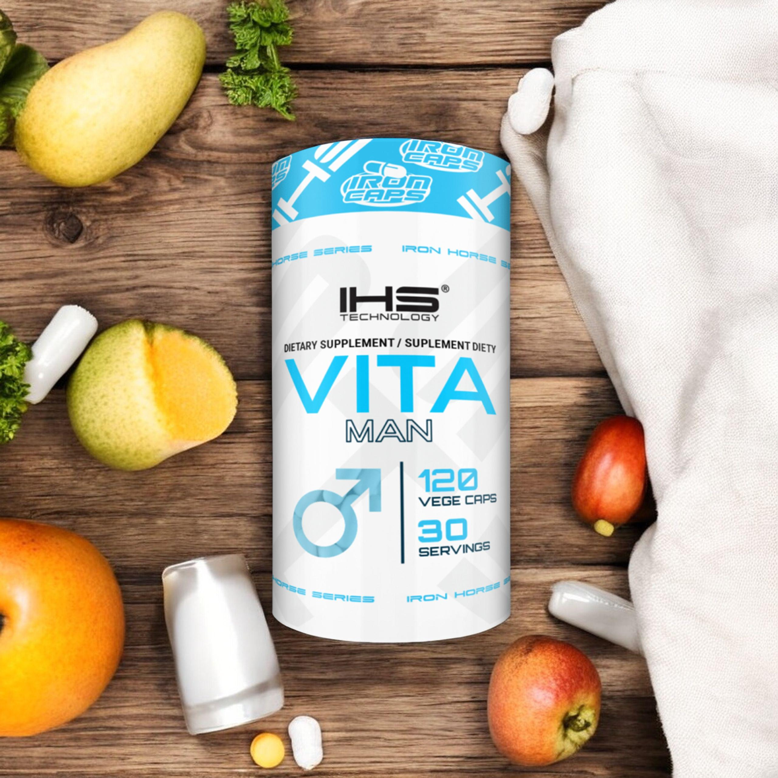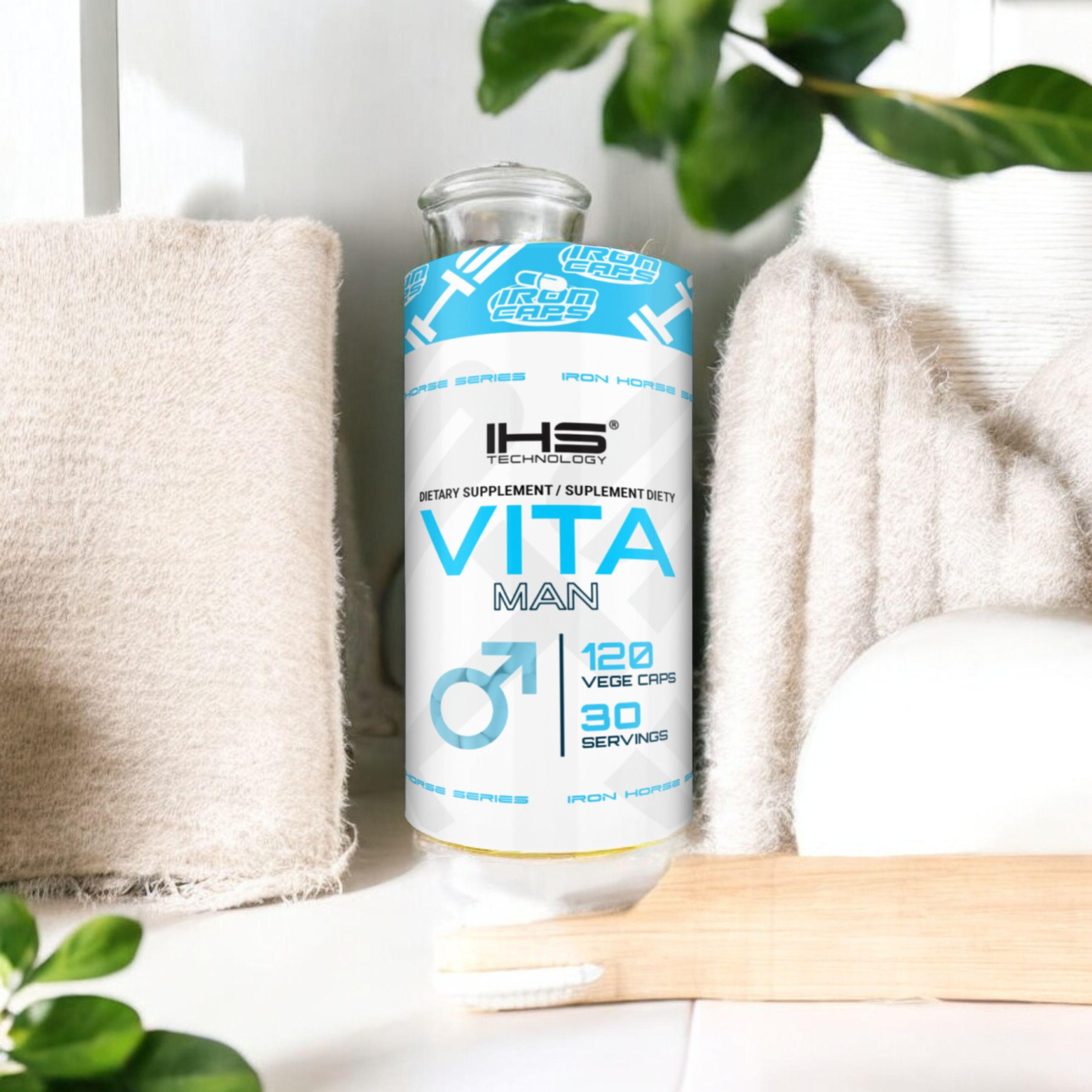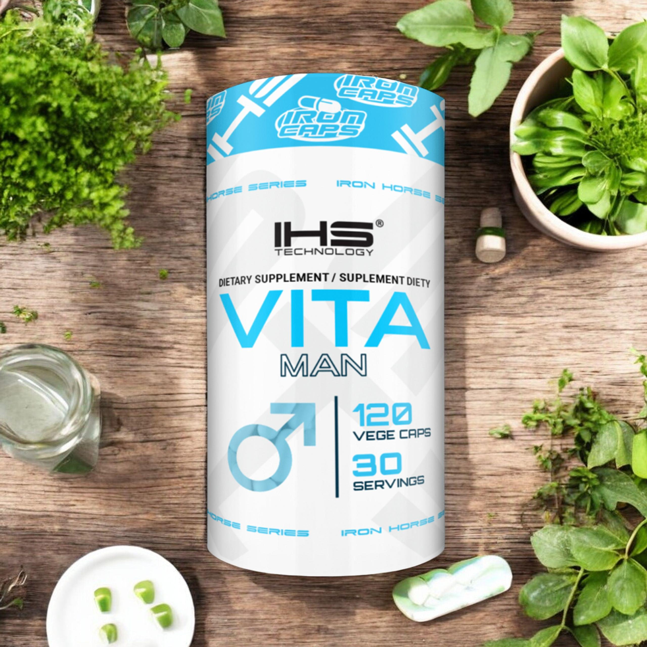 - Vita Man de la marque Iron Horse Series est un supplément complet pour les hommes, contenant 30 ingrédients clés. Soutient l'énergie, la concentration, l'immunité et la vitalité générale. 120 gélules végétariennes.