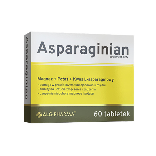 - Asparaginian ALG PHARMA - complément alimentaire avec du magnésium et du potassium pour les personnes actives. Soutient le fonctionnement des muscles, du système nerveux et réduit la sensation de fatigue.