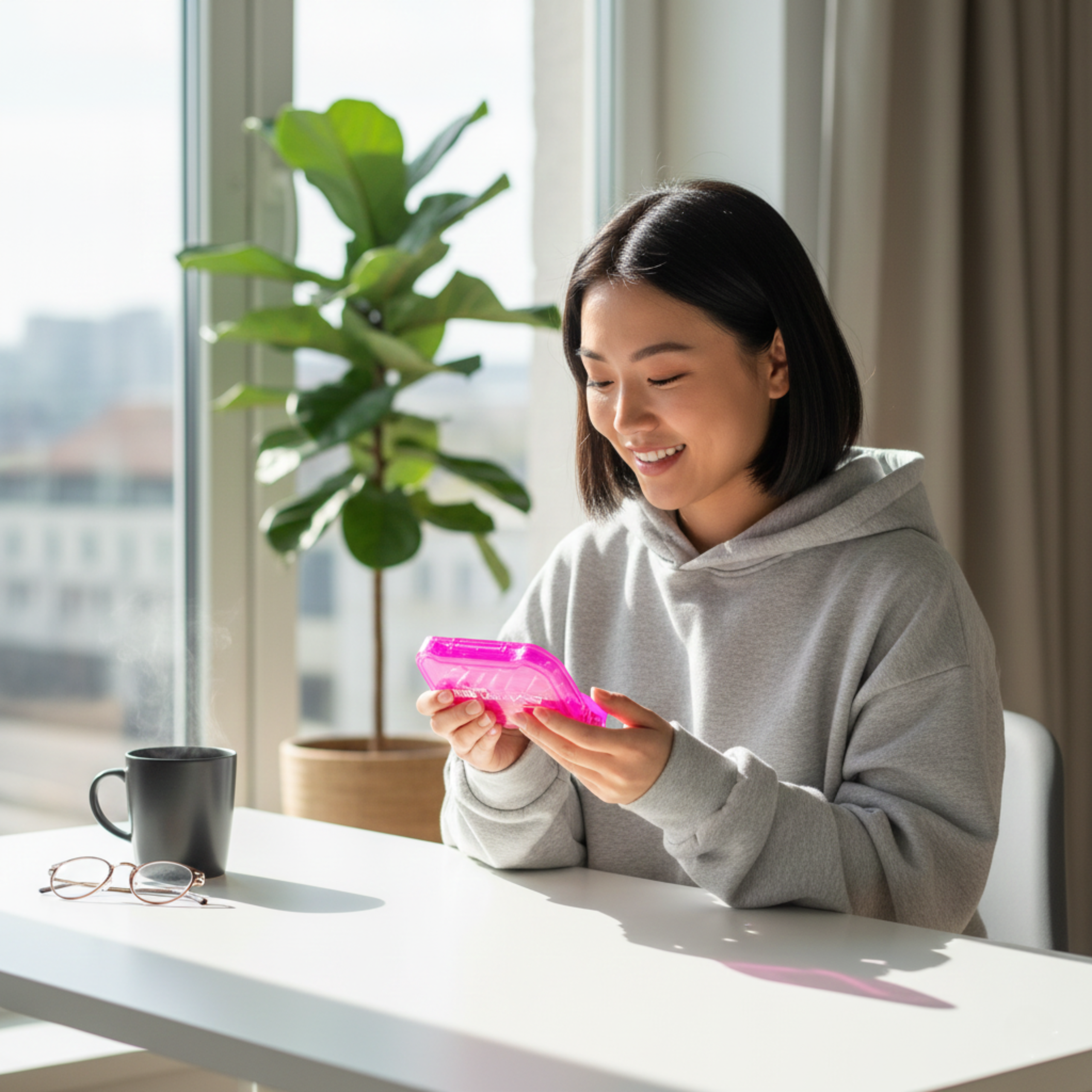 Le rose subtil n'est pas un hasard – c'est un choix réfléchi pour les femmes qui apprécient l'esthétique autant que la praticité. Le projet a été créé en collaboration avec Kamila Wybrańczyk, qui comprend parfaitement les besoins des femmes actives soucieuses de leur santé. Chaque détail de cet organisateur a été conçu en pensant à vous. Six compartiments transparents permettent une identification immédiate des suppléments – votre portion matinale de magnésium, vos oméga-3 de l'après-midi, ou votre collagène du soir soutenant la régénération de la peau. Vous n'avez plus besoin d'ouvrir plusieurs contenants ou de fouiller dans votre sac. Tout est là où il devrait être. La construction solide en plastique de haute qualité garantit que votre organisateur résistera à une utilisation intensive – que ce soit pendant votre jogging matinal, lors d'un voyage d'affaires, ou lors d'une escapade de week-end. Le joint étanche garantit qu'aucune pilule ne tombera et que l'humidité n'atteindra pas vos précieux suppléments. Cette combinaison de design et de fonctionnalité fait du PillBox un élément naturel de votre rituel quotidien de soins de santé – tout comme vos leggings d'entraînement préférés ou votre élégante bouteille d'eau.