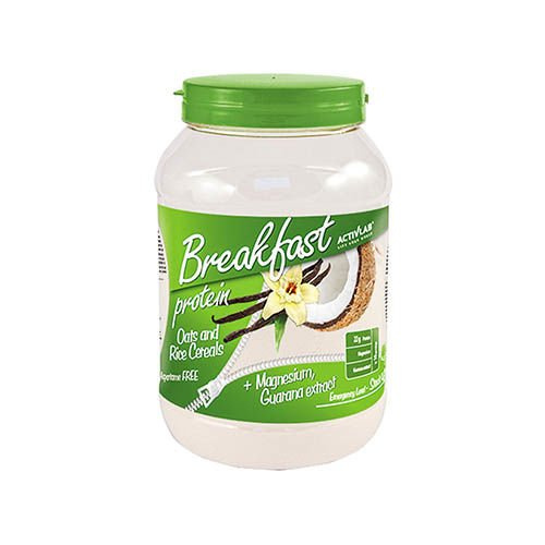 Protein Breakfast est un complément riche en protéines contenant des flocons d'avoine et de riz avec ajout de guarana et de magnésium. Le concentré de protéine de lactosérum est une protéine de la plus haute valeur biologique, riche en acides aminés ramifiés (BCAA) comme la leucine, la valine et l'isoleucine. Les glucides constituent une source d'énergie et de nutrition pour le corps. Les flocons de riz et d'avoine ainsi qu'un complexe de sucres complexes et simples sont les sources de glucides dans le produit.